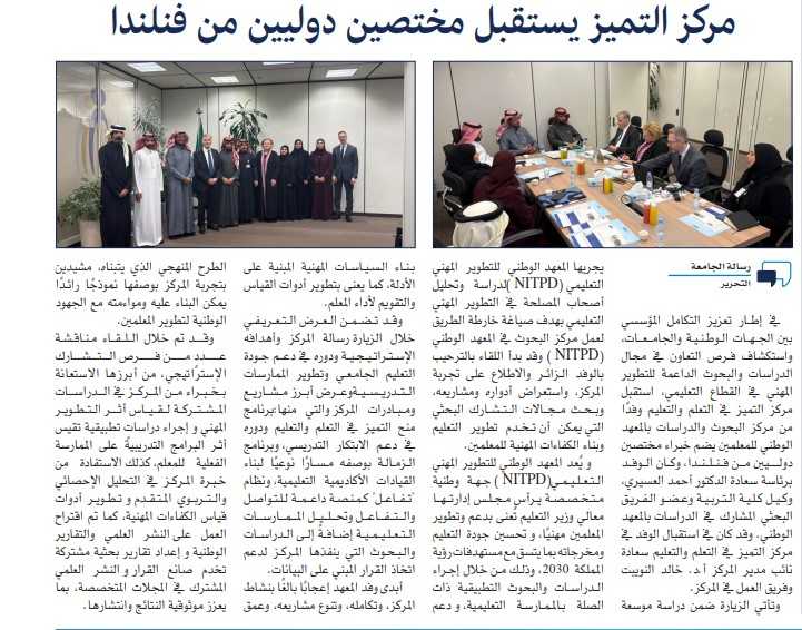 مركز التميز يستقبل مختصين دوليين من فنلندا